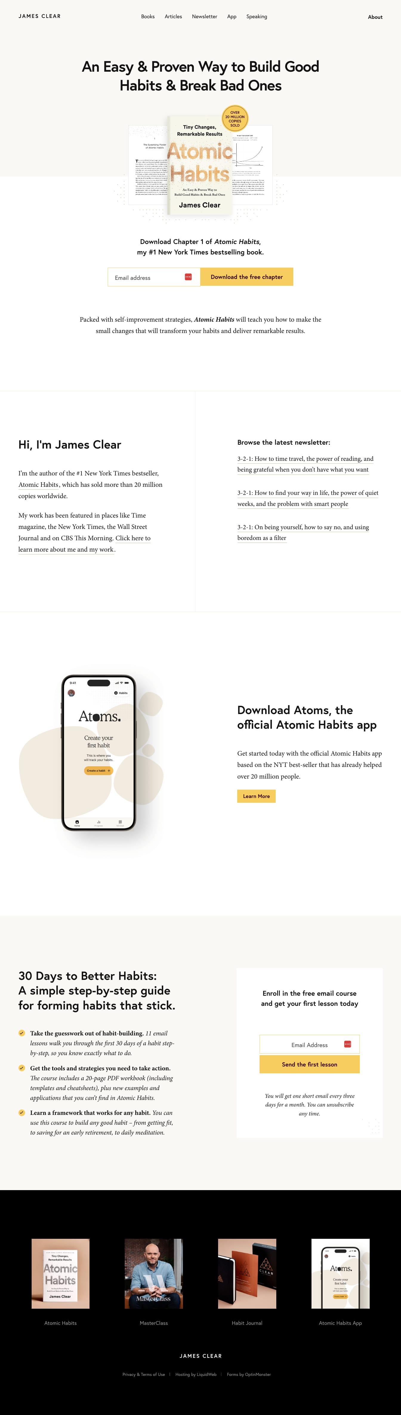 - App product sales page https://atoms.jamesclear.com/